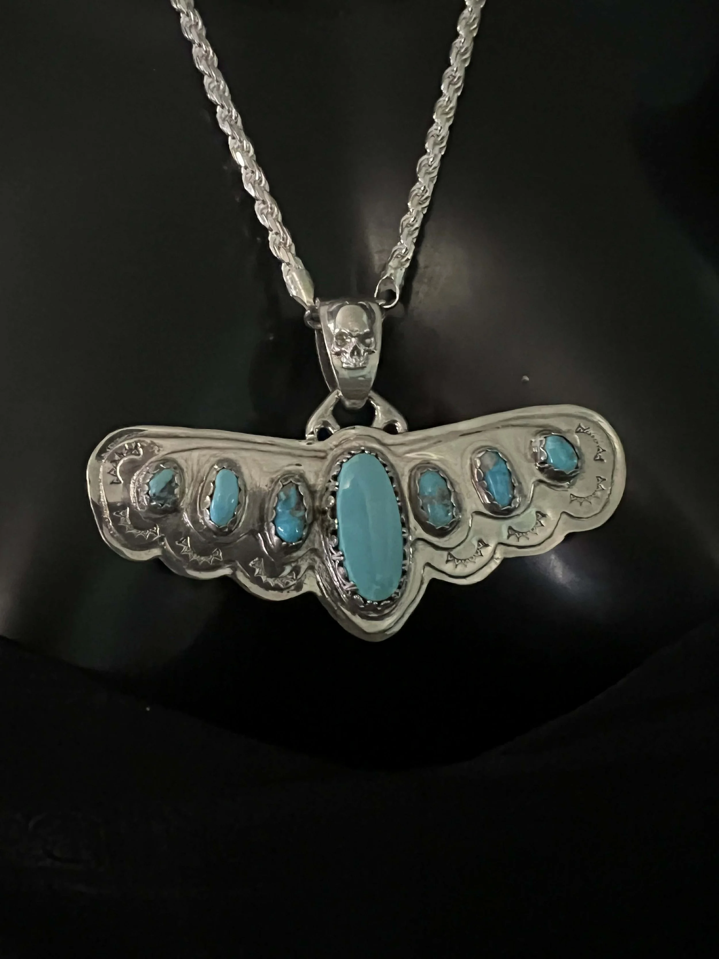 Sterling Silver Sugar Skull and Leather Bolo Station Necklace